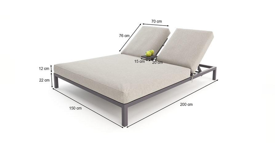 Machen Sie Ihren Außenbereich zu einem Ort der Entspannung mit der "Plaza Sun Lounger Plus" Doppelliege, Teil unserer modernen "Plaza"-Serie. Dieses elegante und moderne Möbelstück bietet maximalen Komfort und ist perfekt für Hausbesitzer, die ihre Gärten oder Terrassen mit Stil ausstatten möchten. Die 6-fach verstellbare Rückenlehne und der abnehmbare Alu-Tisch machen es zu einem vielseitigen und praktischen Möbelstück, während die dicke, 12 cm starke und steingraue Auflage für ultimativen Komfort sorgt. Die Auflage ist leicht abnehmbar und waschbar bei 30°C. Mit unserer "Plaza Sun Lounger Plus" Doppelliege können Sie den Sommer entspannt genießen.