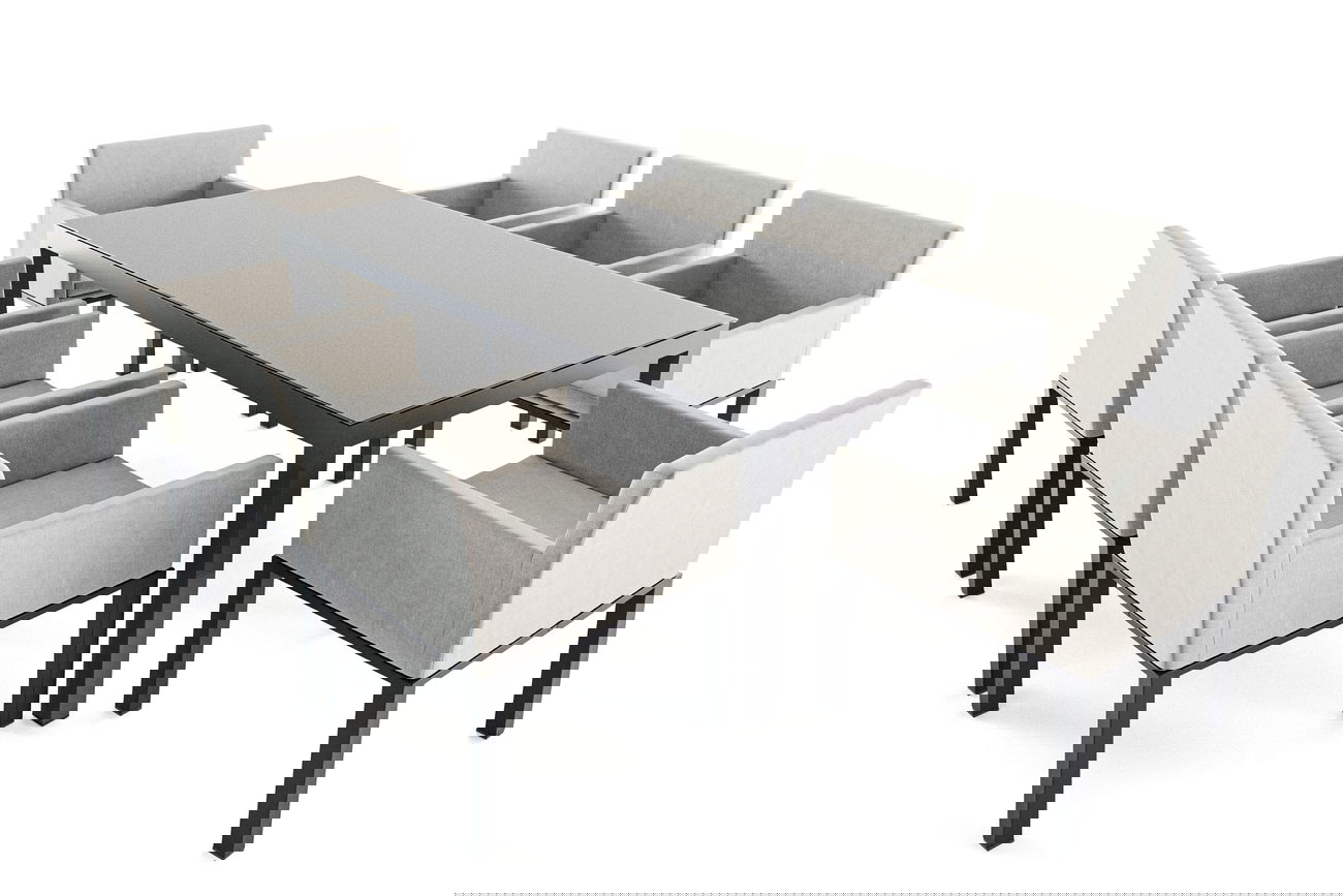 Gepolsterte Dining Set für 8 Personen in Silbergrau. Nur bei Living Zone erhältlich. Gratis Versand.